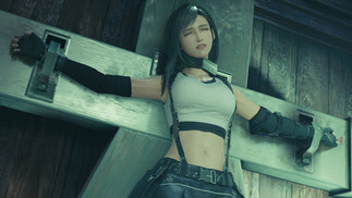 I'm going to be upset at Square Enix if they take out Tifa's (and Yuffie and Elena's) canon DiD scene. But I will also continue to complain that Square didn't give us Tifa or Aerith strapped up on Corneo's dungeon like the pics above. Would've been golden. Yes, I know, no gag.